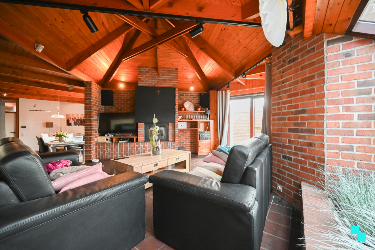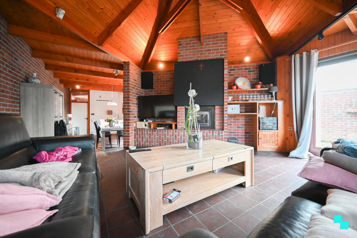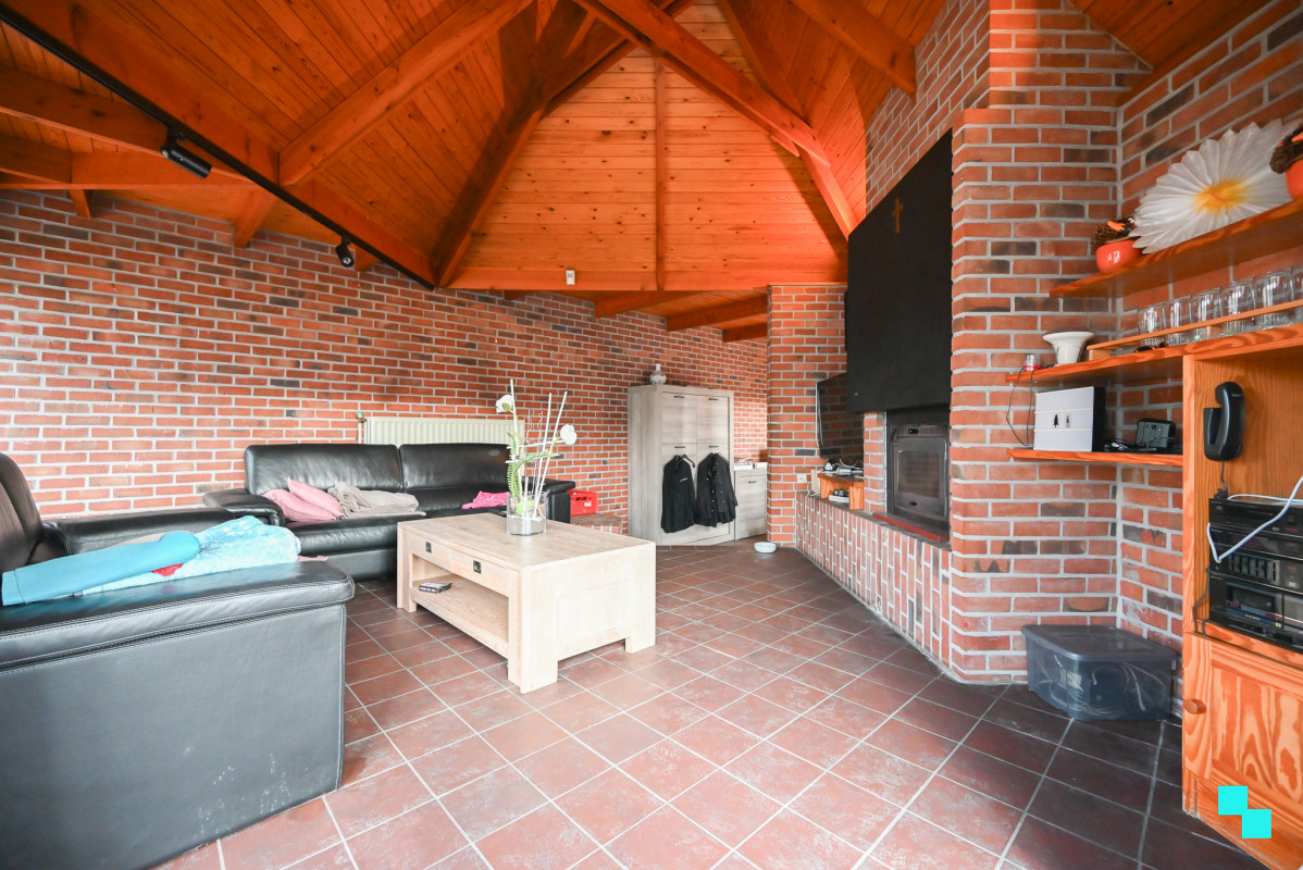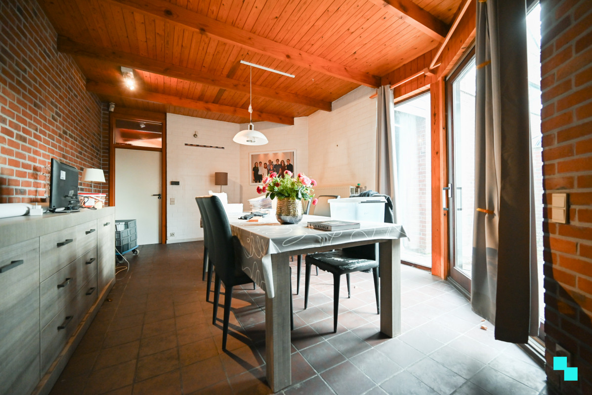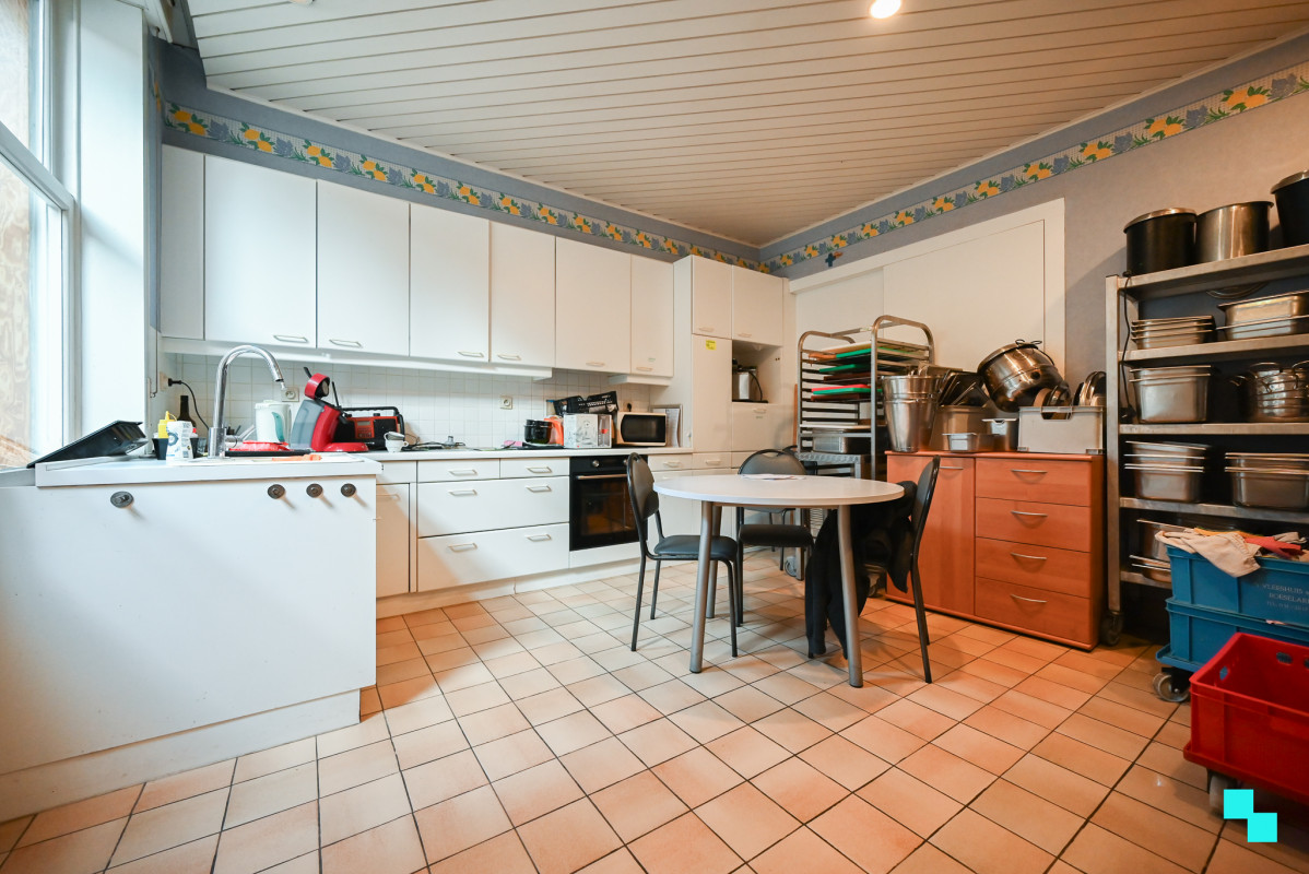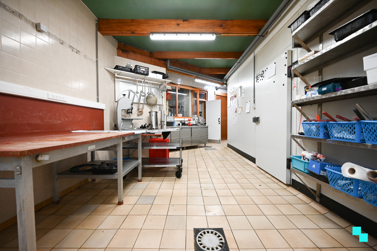 Achterliggend vinden we de slagerij/werkplaats, die technisch grondig werd aangepakt, evenals een keuken, woonkamer, wasplaats en een apart toilet.
