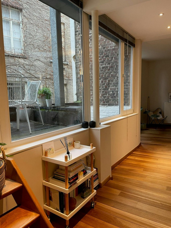 - Duplex appartement met: inkom, berging/fietsenstalling, dressing, 1 slaapkamer, badkamer, toilet, traphal, eetruimte, ingerichte keuken met toestellen, bureau, leefruimte, terras.