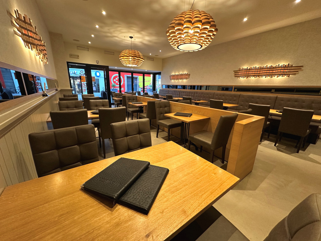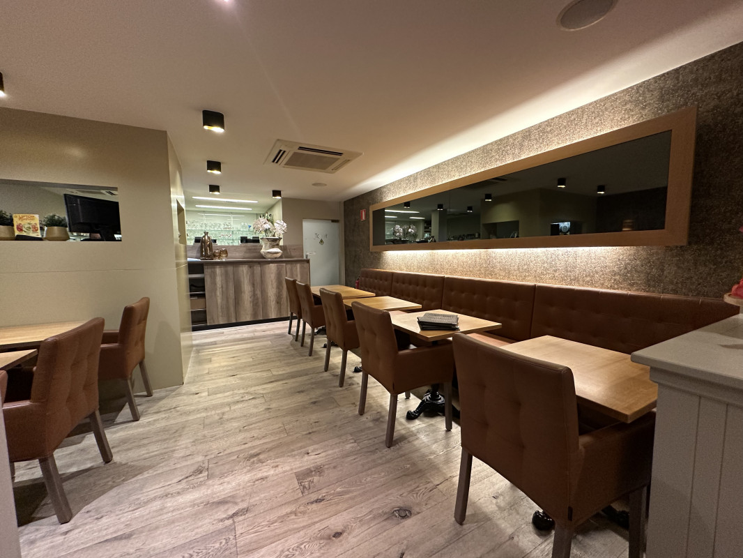 Omvat een terras met plaats voor 28 personen, gelagzaal met open bar met een capaciteit van 62 personen, volledig ingerichte open keuken, kelder, afzonderlijke ingang voor leveranciers met containerstaanplaats, toiletten, tussenverdiep met stockageruimte en kleedkamer personeel.
