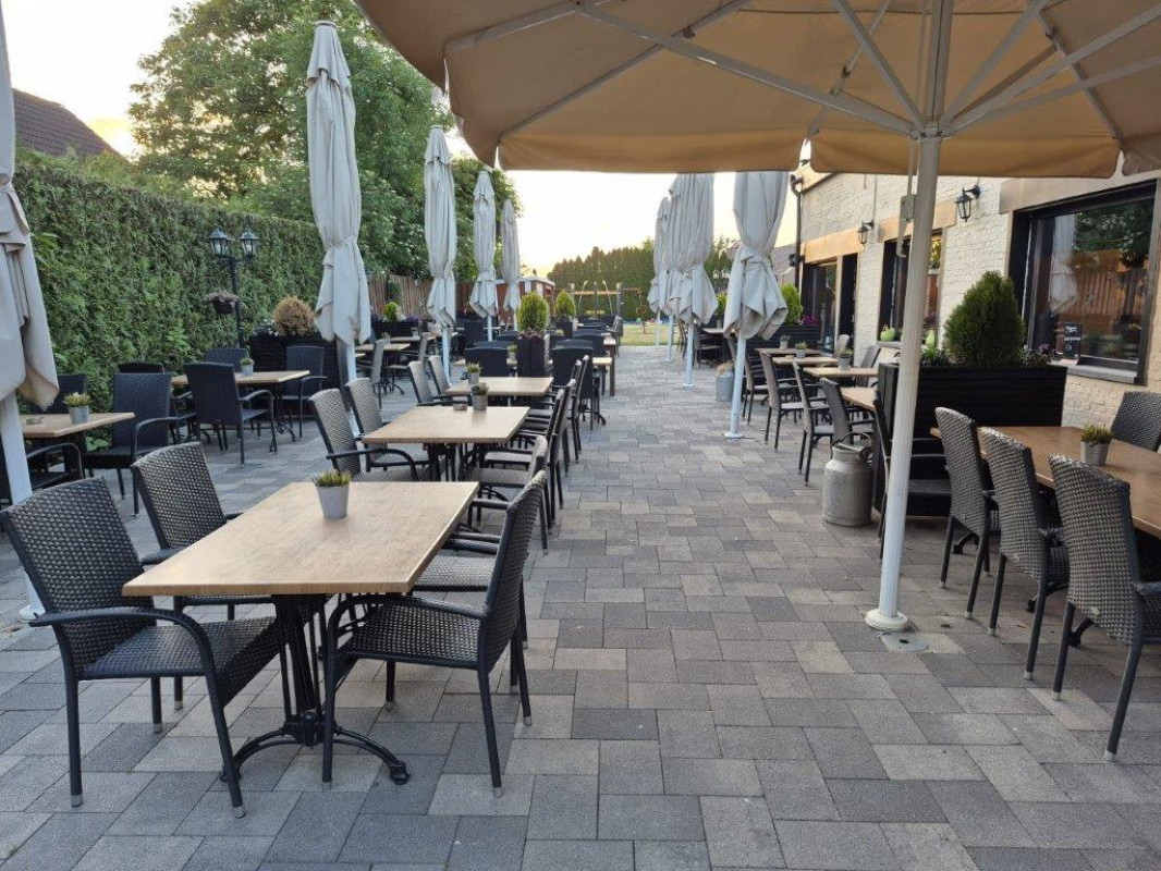 Terras aan de voorzijde is mogelijk en een gezellig ruim tuinterras van ongeveer 190 m² met 160 zitplaatsen met rechtstreeks zicht op de afgesloten speeltuin om de kleine rakkers in het oog te houden.
