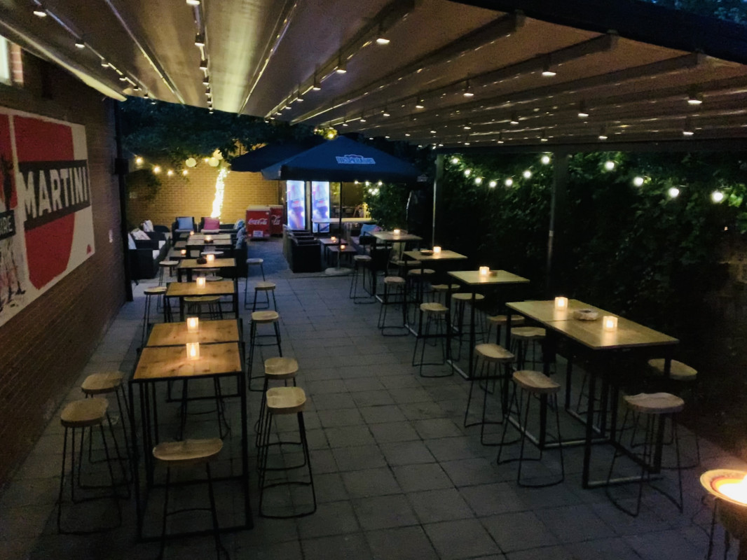 Binnen plaats voor 100-150 personen, buiten een 80 personen