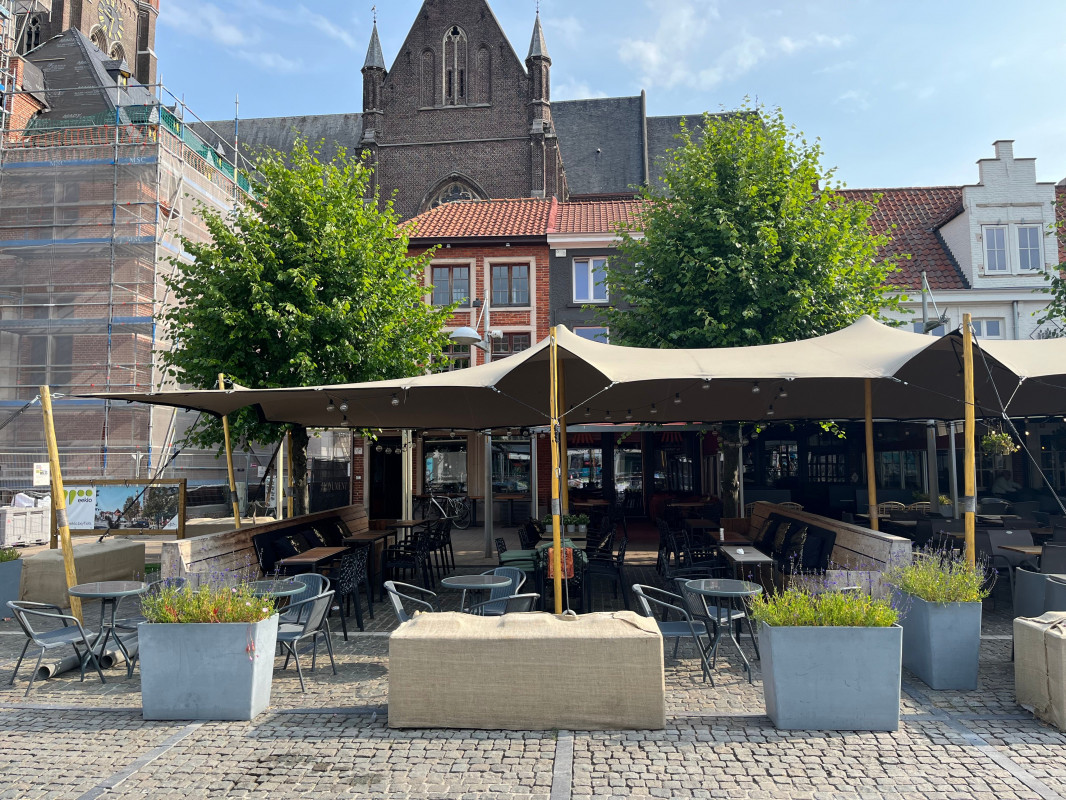 Praatcafé/nachtcafé met ruim terras op de markt van Eeklo