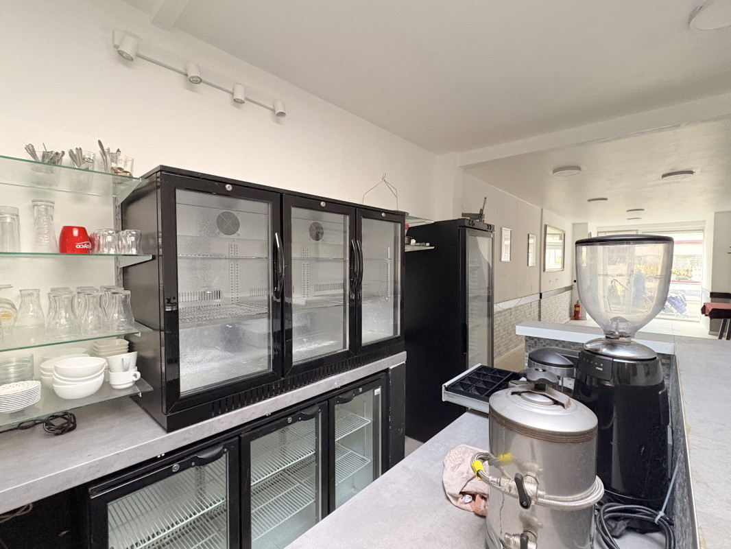 De handelsruimte is voorzien van alle nodige faciliteiten, waaronder een toog, frigo’s en sanitair.
