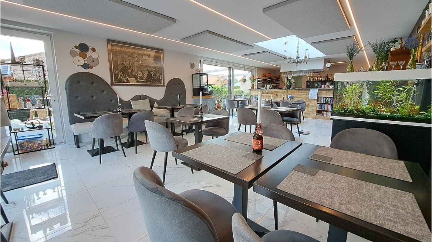 Instapklaar Eetcafe - Tearoom met 2 TERRASSSEN en TUIN op een commerciele ligging in Ramskapelle - Nieuwpoort, tussen toeristische logies. De interessante zaak heeft naast het vast clienteel ook klanten van het (fiets)toerisme. Extra troeven: - Vrij van brouwer