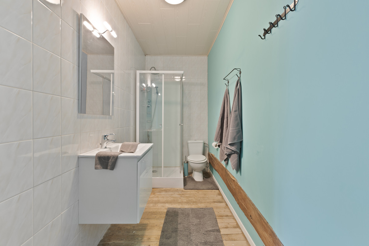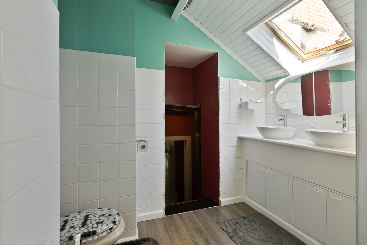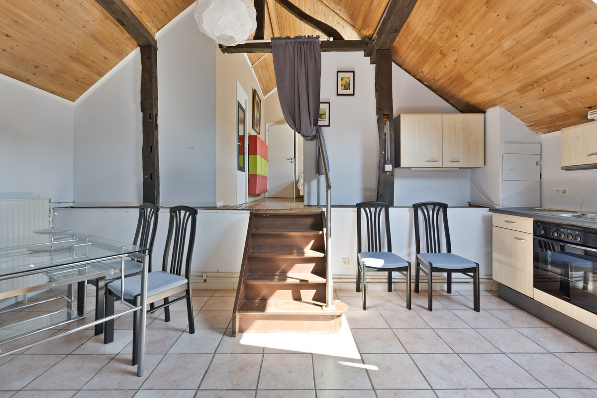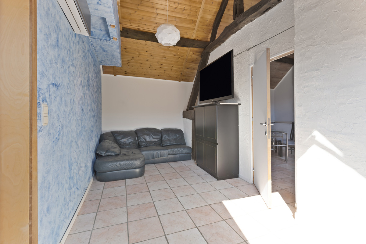 - Boven bevindt zich een prachtige studio met hoog plafond en open balkenstructuur – ideaal als bijkomende B&B-unit of gastenverblijf. Daarnaast is er nog een tweede studio bereikbaar via deze verdieping. Deze twee eenheden zouden eventueel aan bij de B&B toegevoegd kunnen worden.
