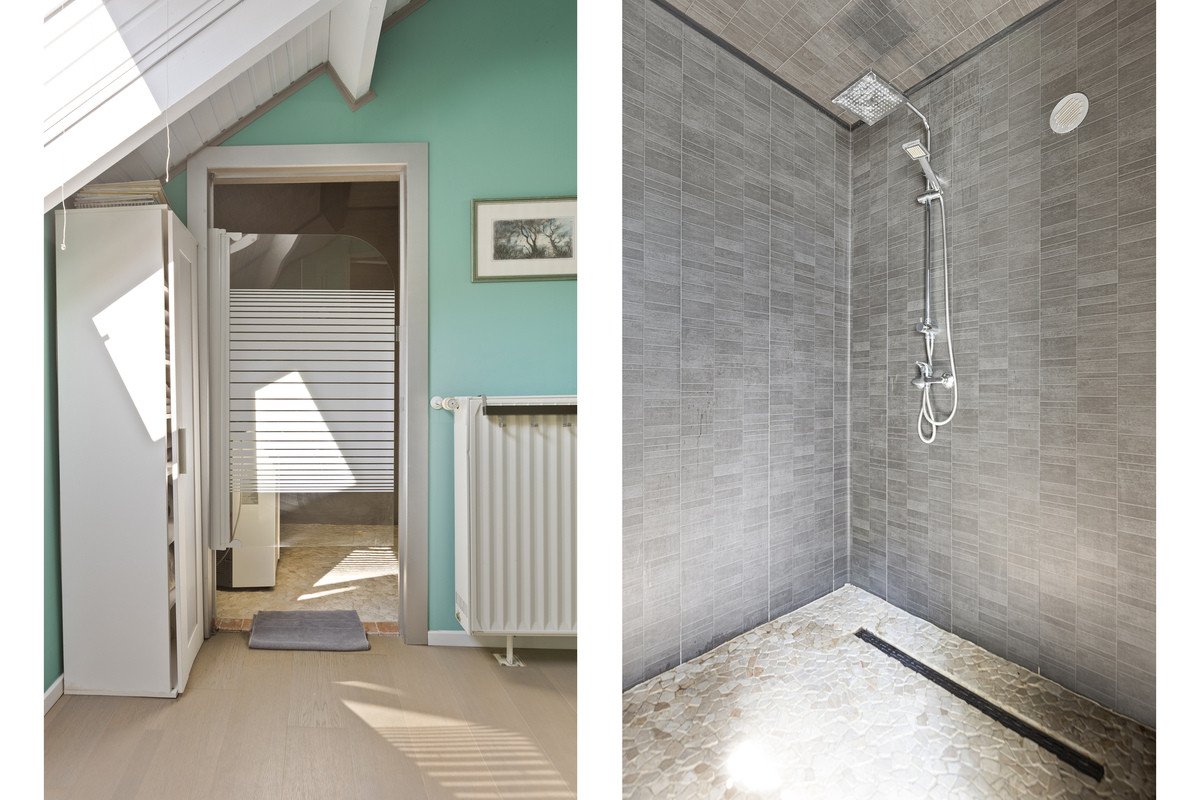 Via een trap aan de achterzijde bereikt u het gastenverblijf bestaande uit twee kamers met elk een eigen badkamer – perfect voor een B&B-concept dat kan worden uitgebreid dankzij de twee studio’s op de bovenverdieping, die zelfs uitgerust zijn met eigen leefruimte, keuken, badkamer en slaapkamer.