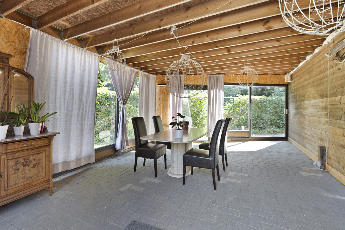 Grenzend aan de zaal werd een niet-vergunde uitbouw geplaatst die uitkomt in de aangelegde tuin met zithoekjes, grote speeltuin voor veel vertier en ook nog een dierenparkje – een sfeervolle meerwaarde voor elk evenement.