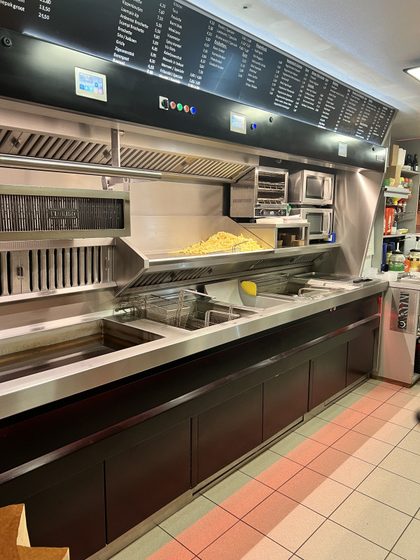 Alles werd recent vernieuwd, zoals friteuse met lift voor de frieten - koelcel - vriescel - kassa.