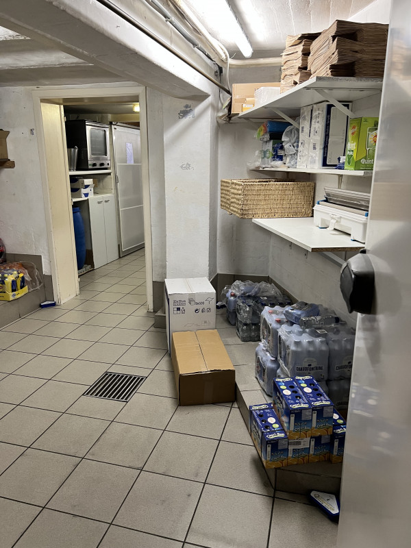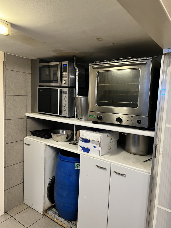 er is ook nog een kelder verdieping aan het gebouw, waar zich de keuken voor de bereidingen bevind, met een kookfornuis, oven voor de broodjes, vaatwas machine en bergingen voor de dranken en andere toebehoren zoals de vriescel en koelcel.