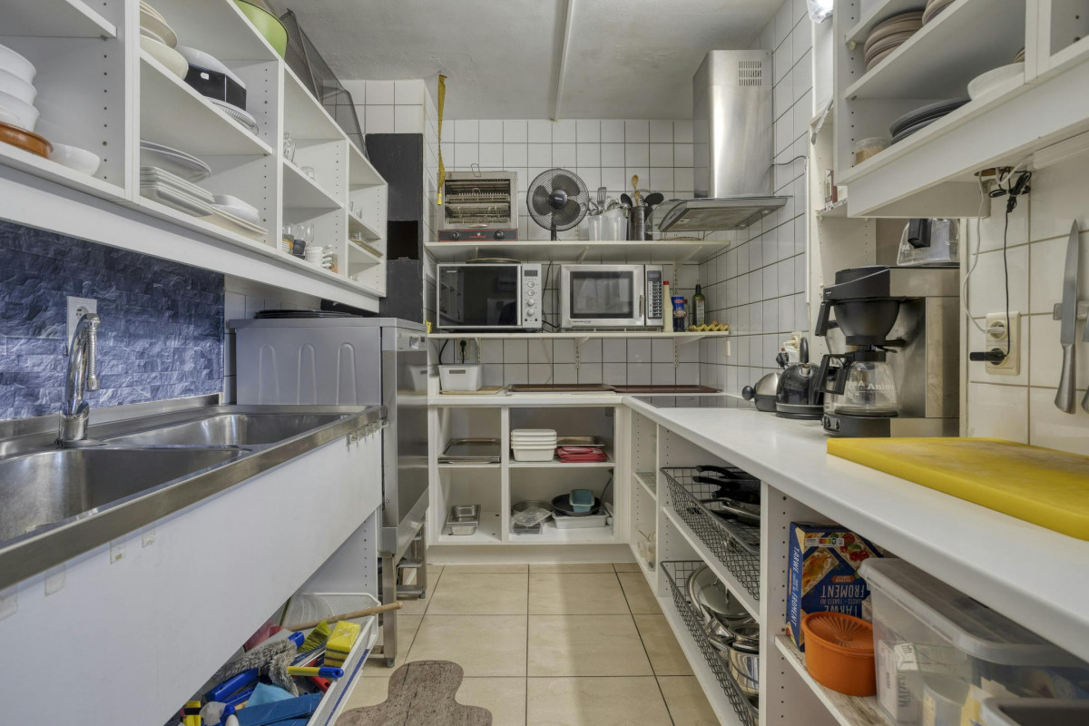 Gelijkvloers : onthaal/receptie, ontbijtruimte met keuken en koelkamer, toiletten, 4 tweepersoonskamers met badkamer - terras
