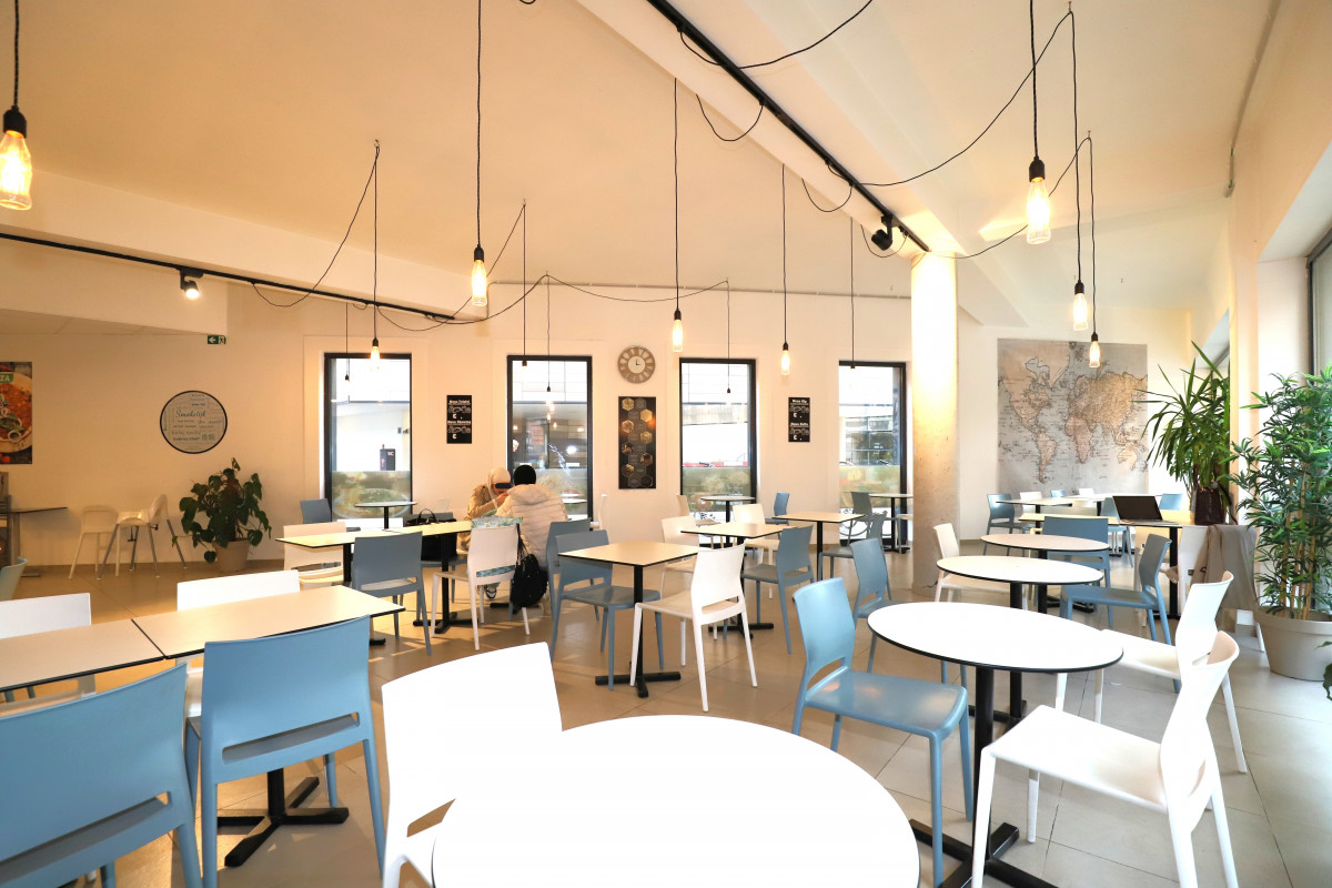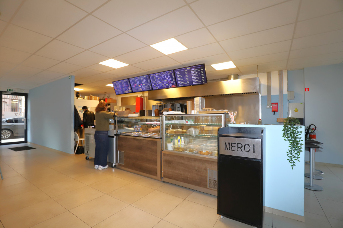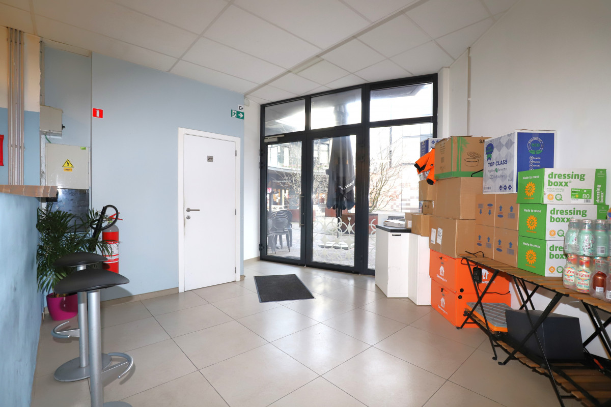 De handelszaak is zeer ruim, beschikt over twee afzonderlijke ingangen en twee terrassen, wat zorgt voor maximale zichtbaarheid en toegankelijkheid.