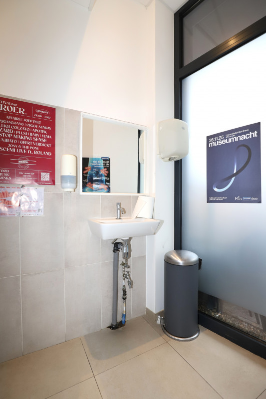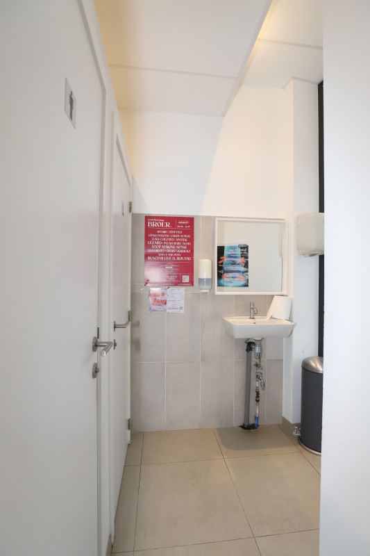 2 inkomhallen, zaal en eetruimte, toog, bakplaats, wasplaats, open stockplaats, terrassen aan zij- en achtergevel, aparte dames- en herentoiletten.