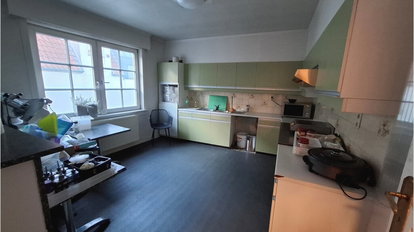 Omvat een gelagzaal met bar met een capaciteit van 26 personen, een terras met een capaciteit van 20 personen, keuken, kelderverdieping, toiletten en een ruim achterliggend terras voor stockage. Op de eerste verdieping vinden we een leefruimte, keuken, 2 slaapkamers en een badkamer
