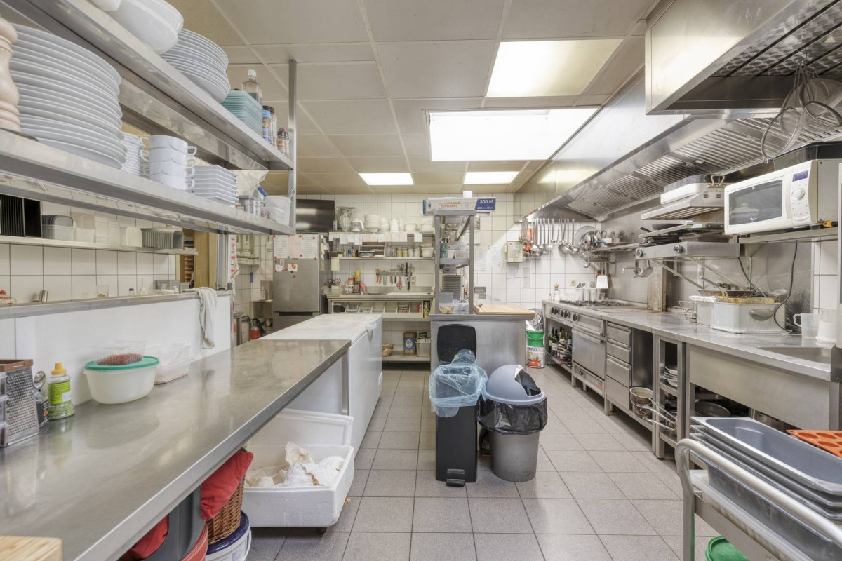 De oppervlakte is in totaal 165 m² op het gelijkvloers, inclusief een professioneel uitgeruste keuken.