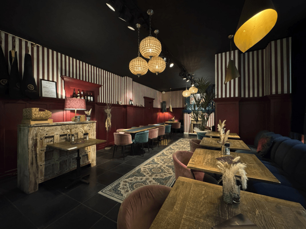 Gelagzaal met romantisch interieur (100 m²) voorzien van 30 zitplaatsen binnen, aangevuld met 4 loungeplaatsen en 16 sfeervolle galerijzitplaatsen. Verder beschikt de zaak over een functionele bar, een volledig uitgeruste professionele keuken, sanitair, een ruime stockage (80 m²) en een kelder.