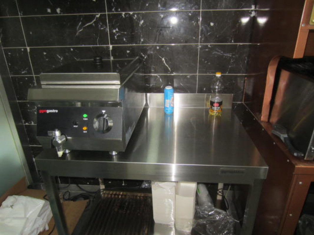 Verder een geïnstalleerde keuken / afwaskeuken met inox koelkast , dubbele inox koelkast en diepvriezer .