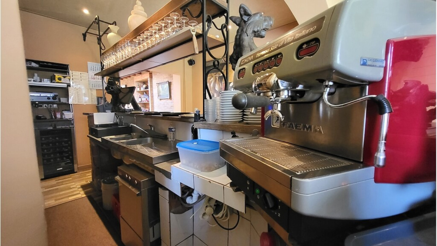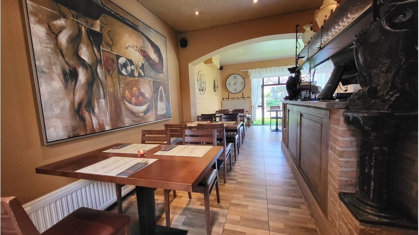 Omvat een gelagzaal met een capaciteit van 40 personen, bar, open keuken, kelder, toiletten ( dames- heren- andersvalide), aanpalend een deels overdekt terras met een capaciteit van 60 personen, opslagruimte en een garage.