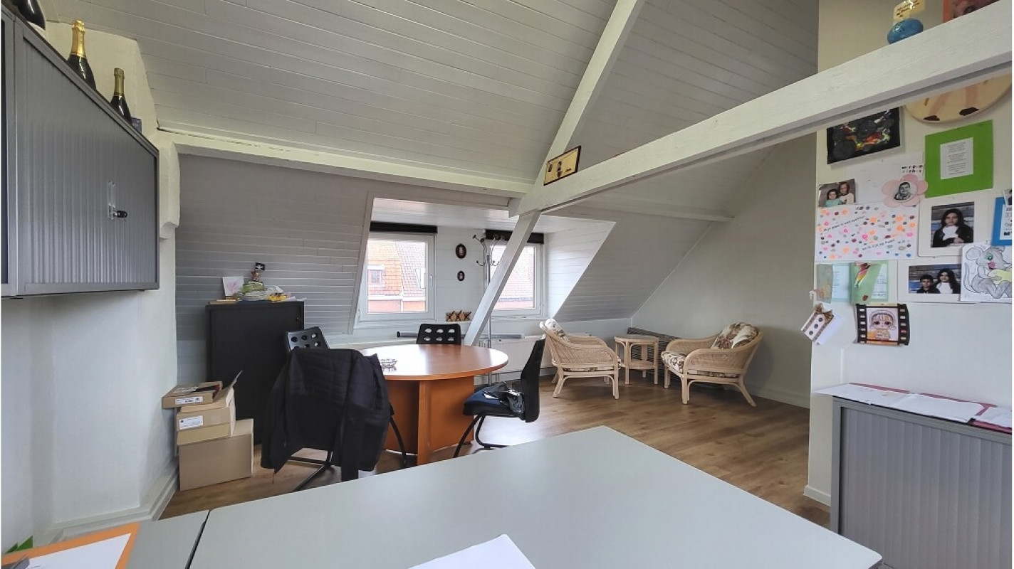 Op de tweede verdieping vinden we nog een ruime bureel- of leefruimte.