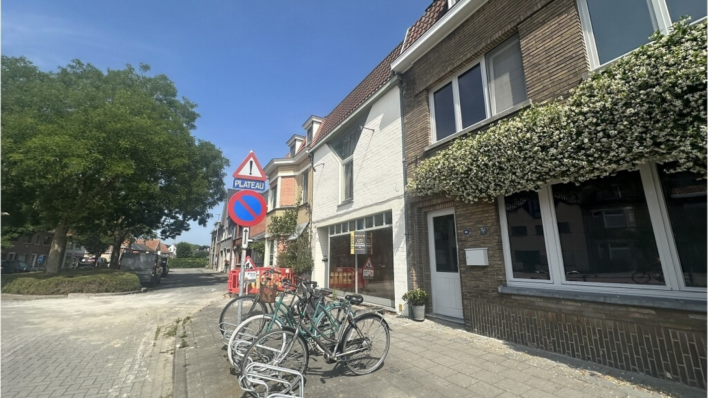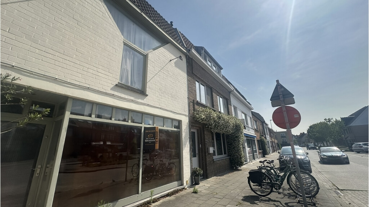 Omvat op het gelijkvloers een handelsruimte van 156 m², inclusief een keuken en toilet, ruim terras en bordertuintje. Op de eerste verdieping vinden we een leefruimte en badkamer. De tweede verdieping omvat een slaapkamer en bureel. Dit pand is mogelijks onderhevig aan de renovatieplicht van niet-residentieel vastgoed, opgelegd door de Vlaamse overheid.