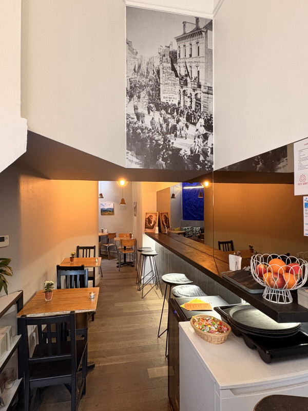 De gelijkvloerse handelsruimte wordt momenteel uitgebaat als een hippe koffiebar en geniet van een mooie, goed zichtbare etalage met mogelijkheid tot een gezellig terras aan de voorzijde. Dankzij de centrale ligging, de hoge passage en de aantrekkelijke gevel is dit een uitstekende locatie voor wie zichtbaarheid en sfeer belangrijk vindt.