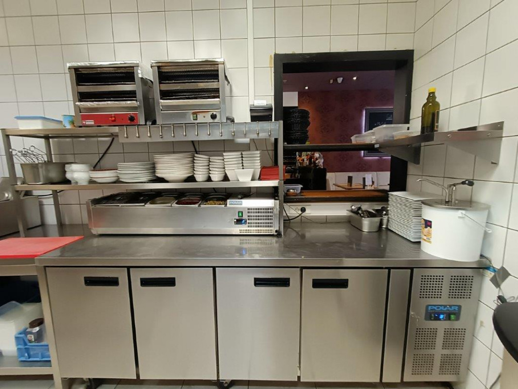 Verder nog een geinstalleerde keuken met al de nodige toestellen , aparte toiletten voor dames en heren en twee bergplaatsen .
