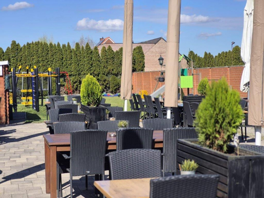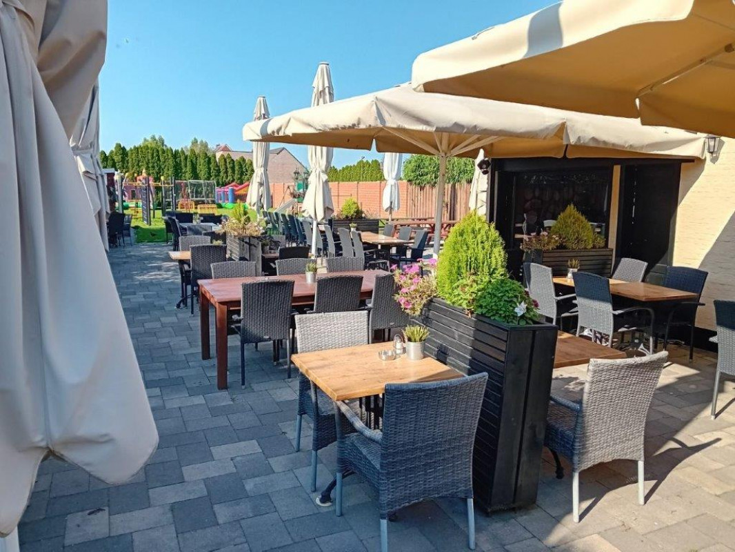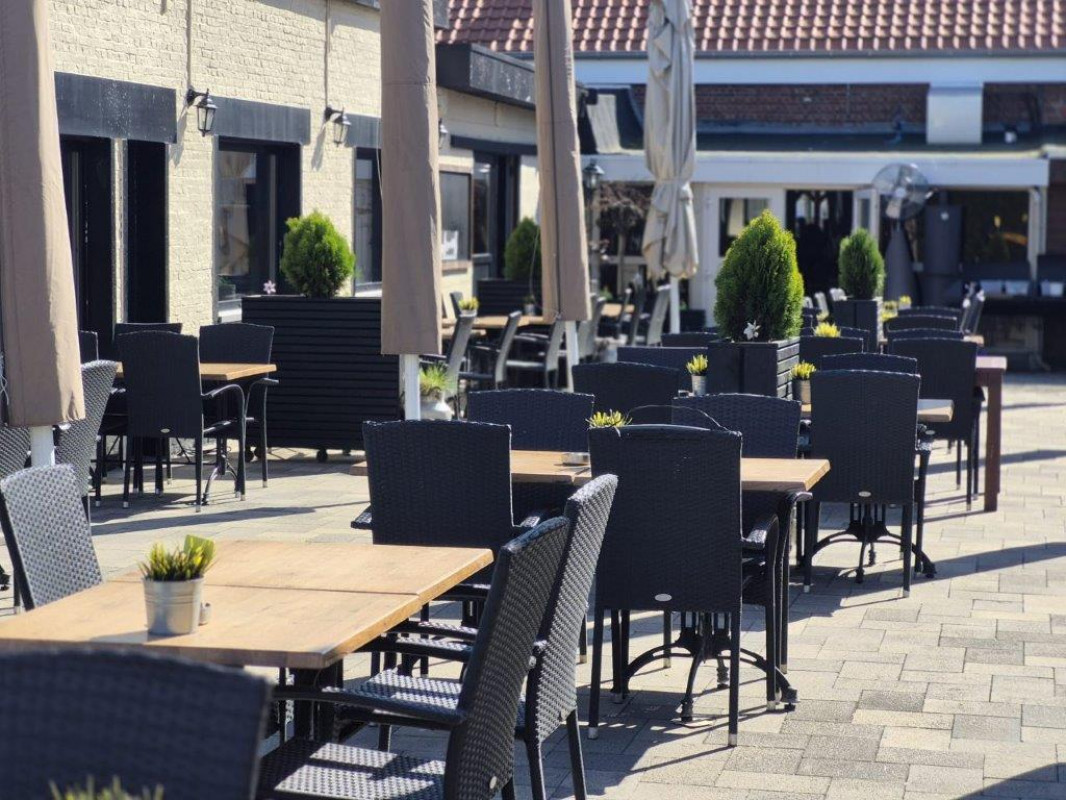 Terras aan de voorzijde is mogelijk en een gezellig ruim tuinterras van ongeveer 190 m² met 160 zitplaatsen met rechtstreeks zicht op de afgesloten speeltuin om de kleine rakkers in het oog te houden.