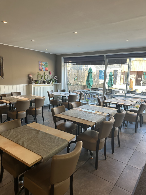 We hebben 12 tafels van 2 personen en 1 ronde tafel. Er is ook een woning boven het zaak. En een tuin achter het zaak .de handelspand, de woning, tuin, garage alles is inbegrepen in de huurprijs . We hebben ook een terras buiten met 10 tal tafels. Er is ook een grote garage aanwezig.
