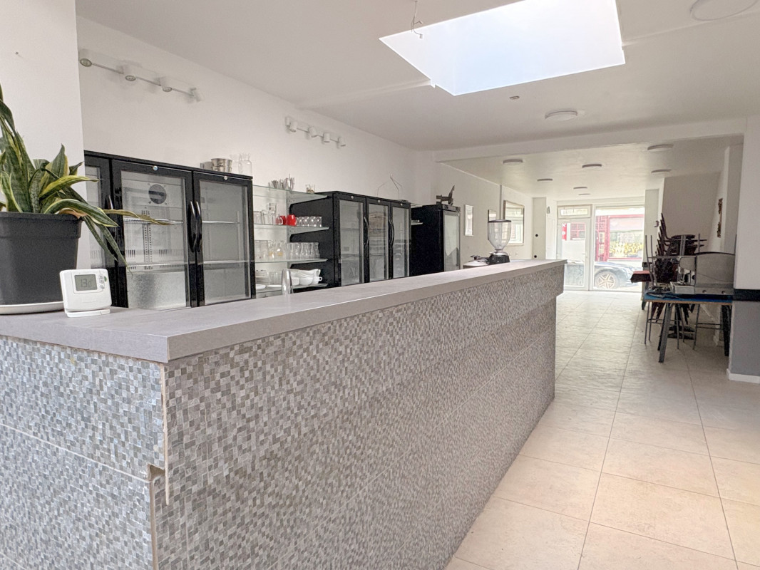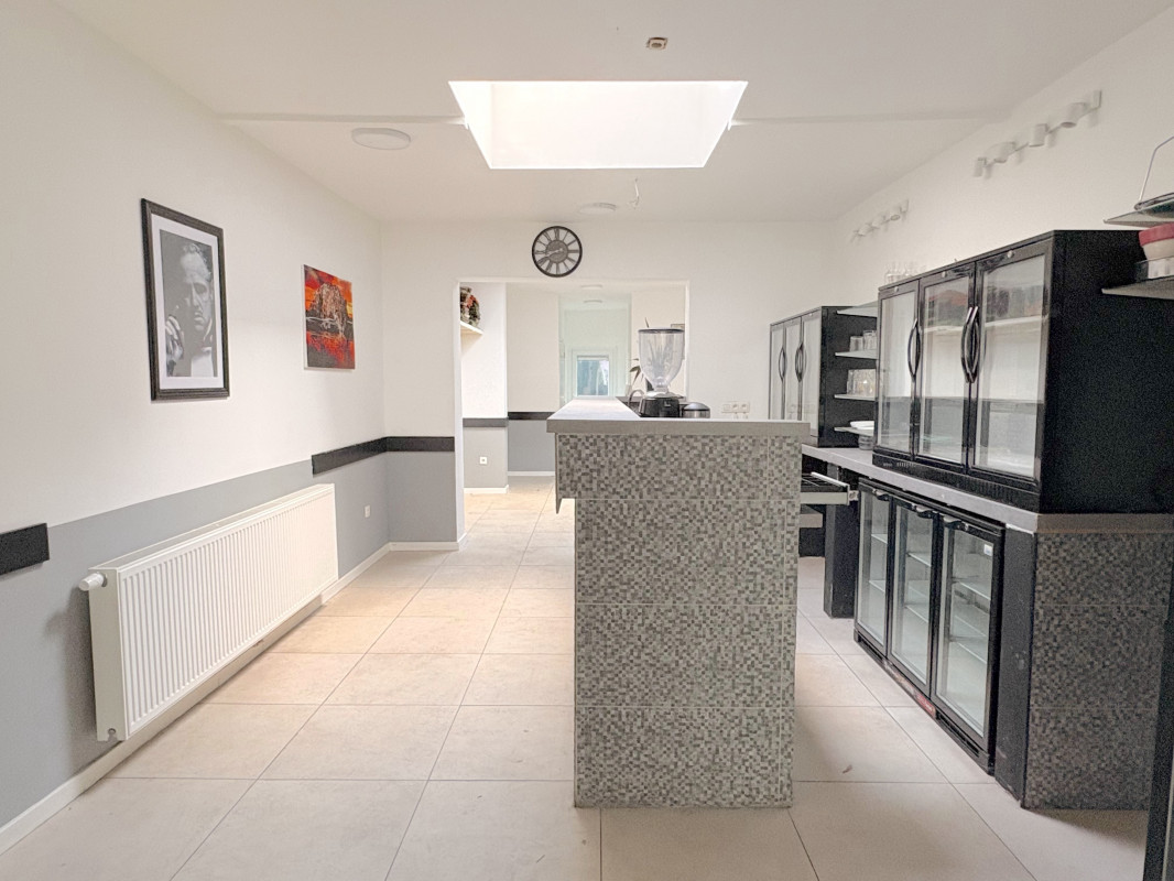 De handelsruimte is voorzien van alle nodige faciliteiten, waaronder een toog, frigo’s en sanitair.