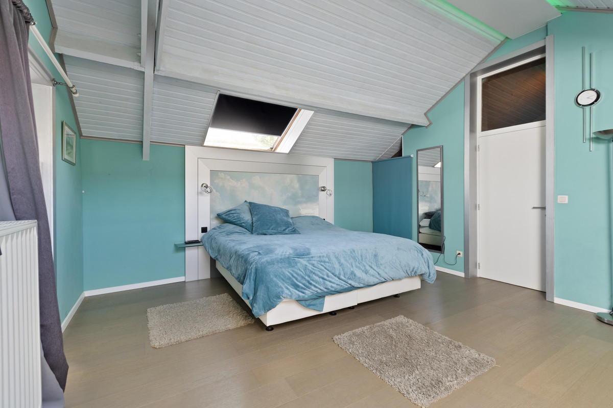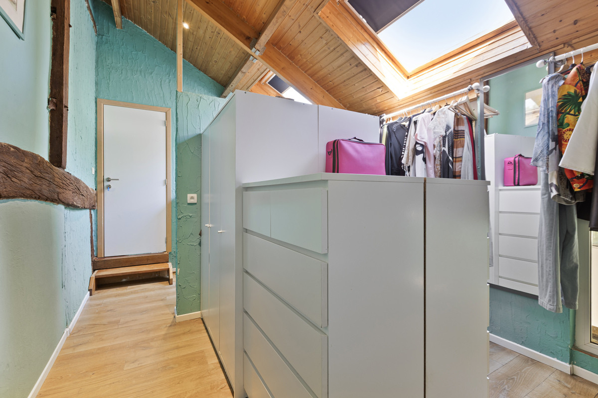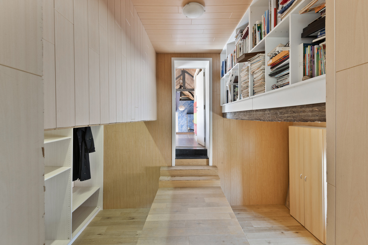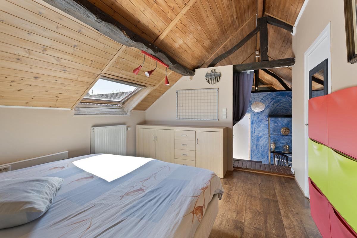 - Boven bevindt zich een prachtige studio met hoog plafond en open balkenstructuur – ideaal als bijkomende B&B-unit of gastenverblijf. Daarnaast is er nog een tweede studio bereikbaar via deze verdieping. Deze twee eenheden zouden eventueel aan bij de B&B toegevoegd kunnen worden.