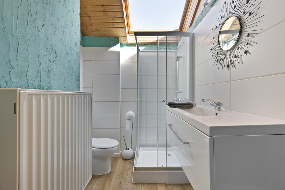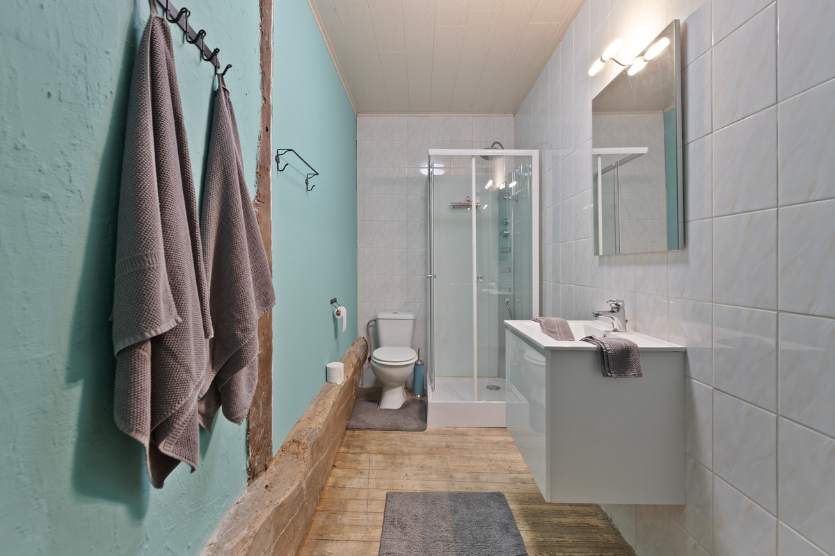 In de tuin van de privéwoning bevindt zich een losstaand bijgebouw dat vandaag dienstdoet als wellnessruimte, uitgerust met polyvalente ruimte, sauna’s en jacuzzi – een prachtige aanvulling op het B&B- of retreataanbod.