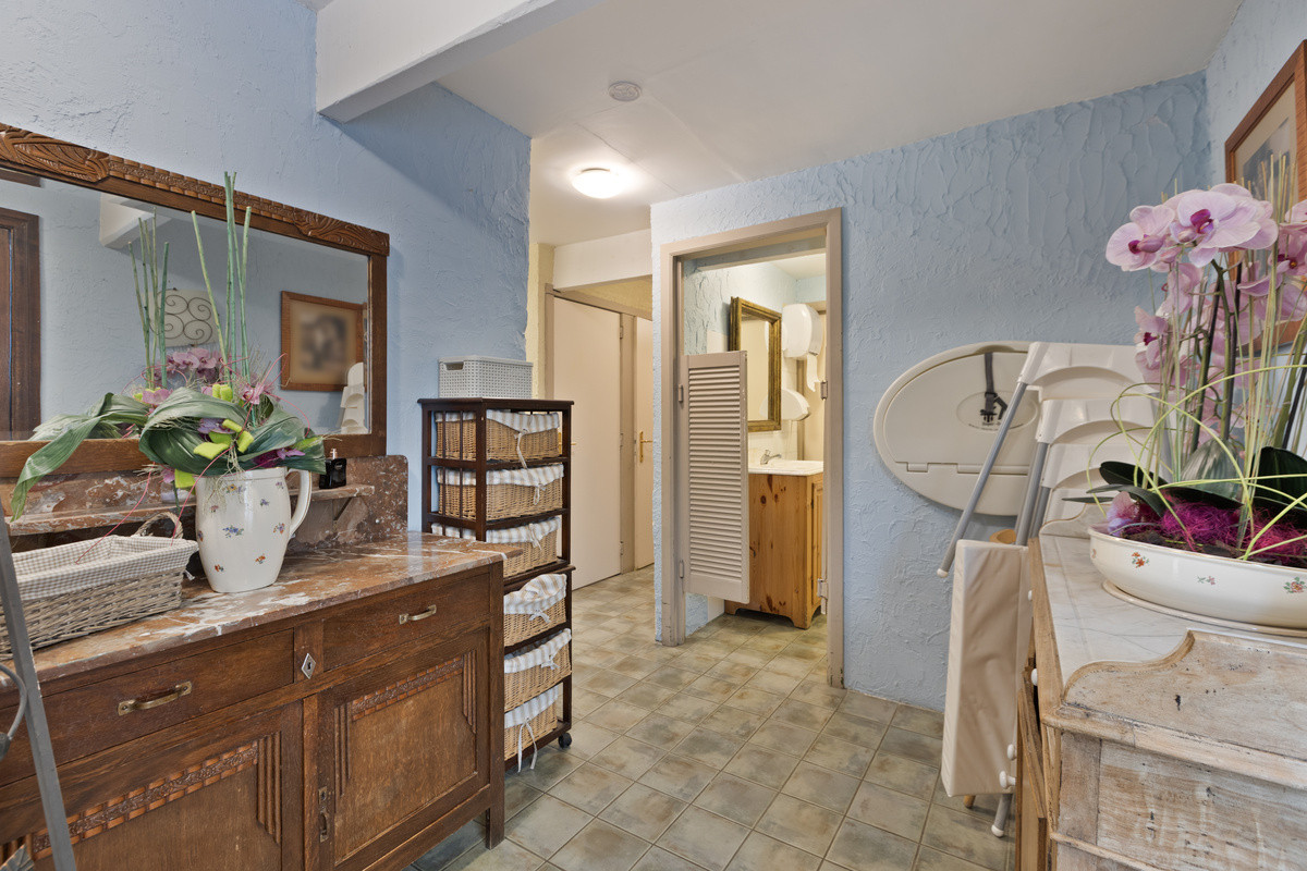 De private woonst met eigen inkom is verbonden met de binnenkoer en omvat: