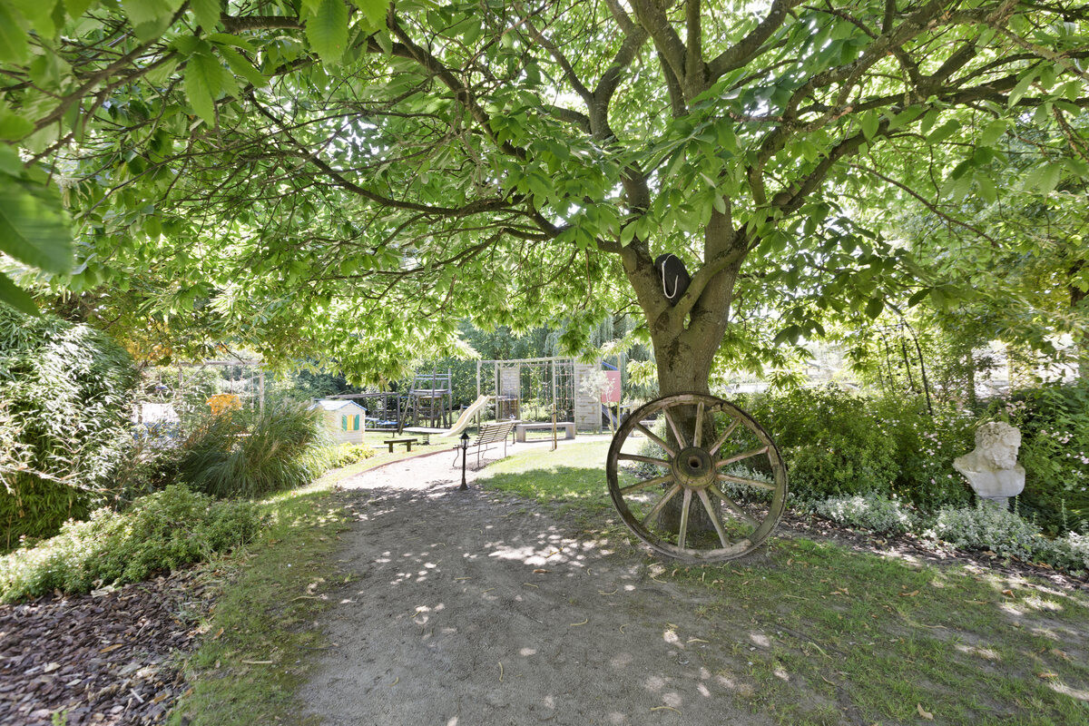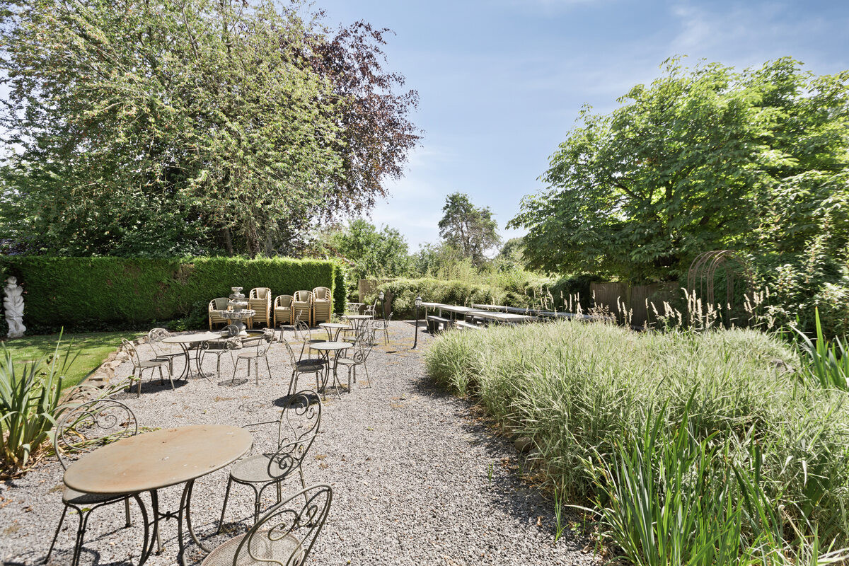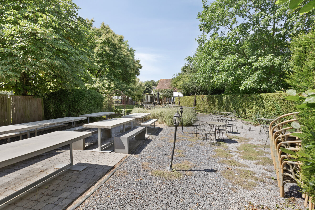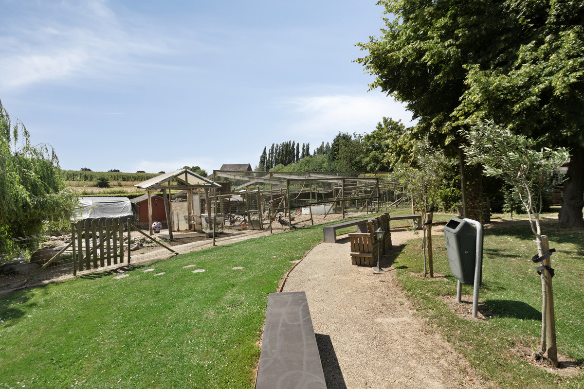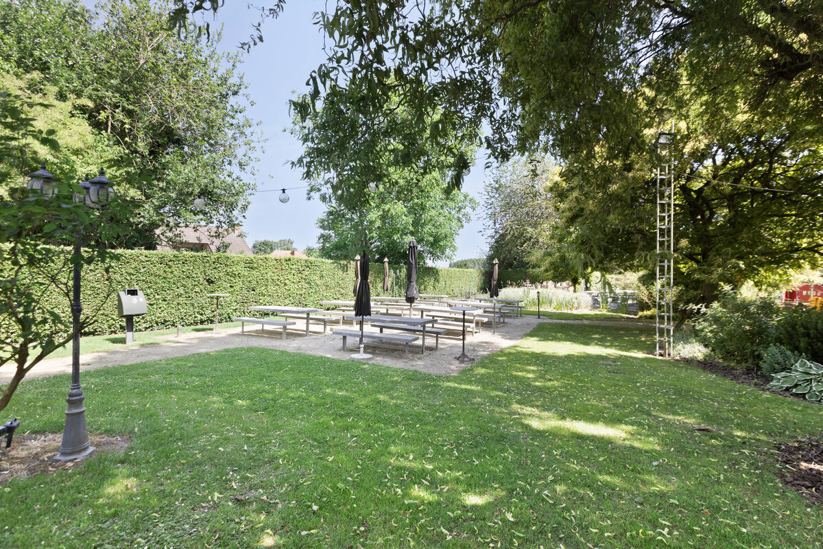 Grenzend aan de zaal werd een niet-vergunde uitbouw geplaatst die uitkomt in de aangelegde tuin met zithoekjes, grote speeltuin voor veel vertier en ook nog een dierenparkje – een sfeervolle meerwaarde voor elk evenement.