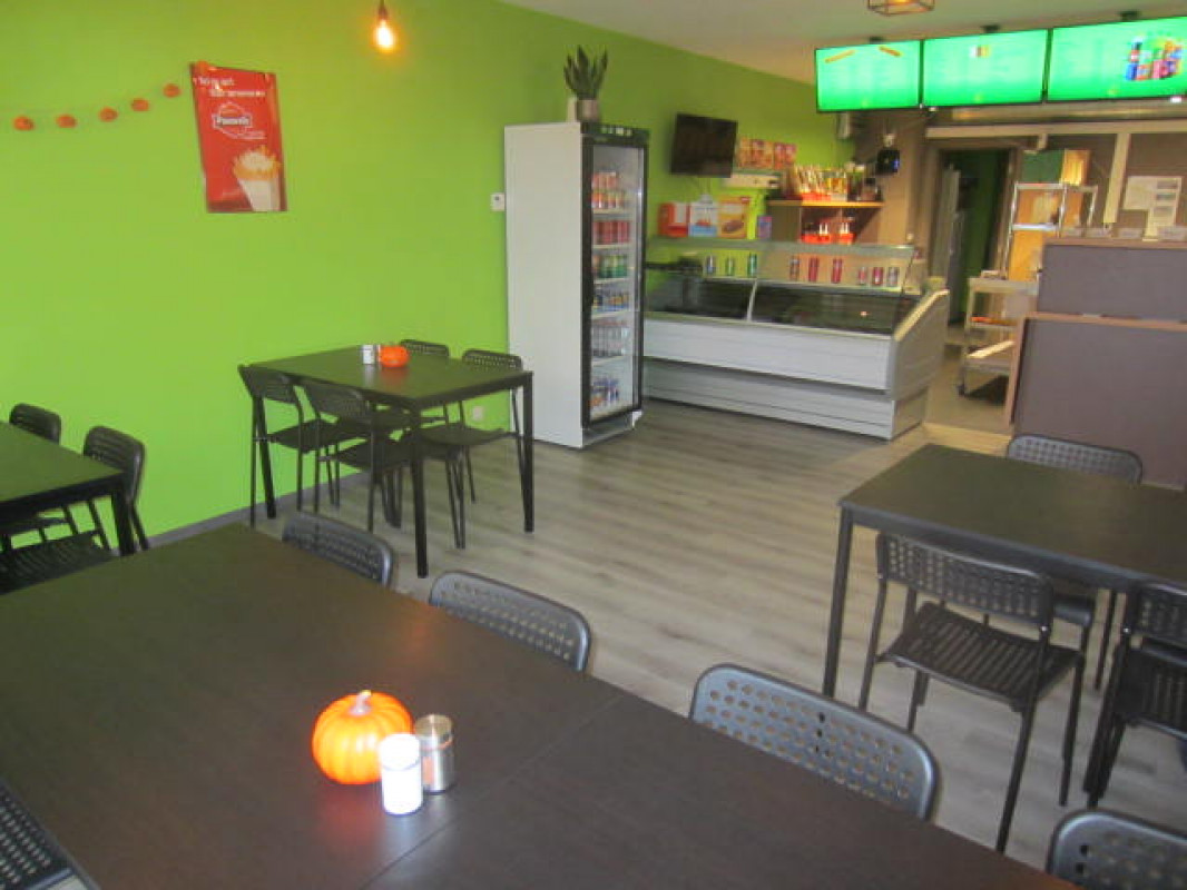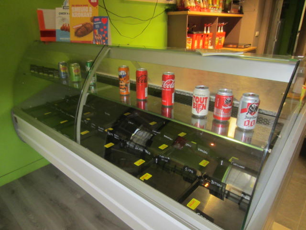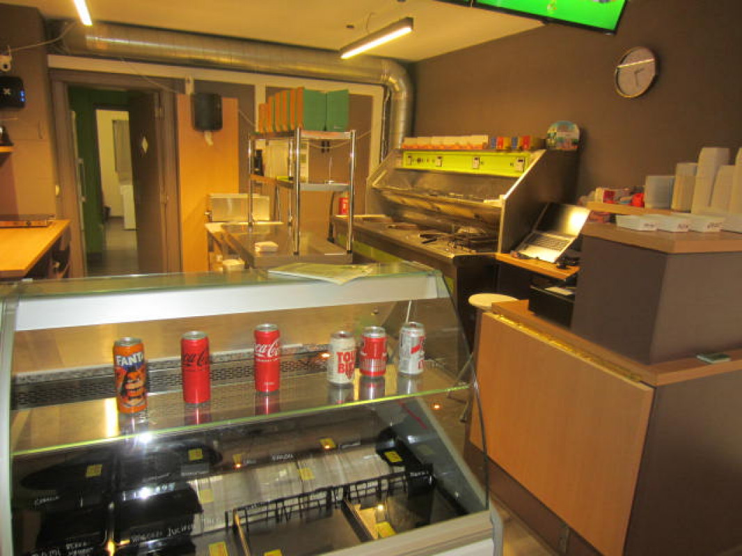Deze zaak beschikt over een verbruikzaal van ongeveer 55 m2 met een bedieningskoeltoog en een 20 tal zitplaatsen en 4 tv schermen .
