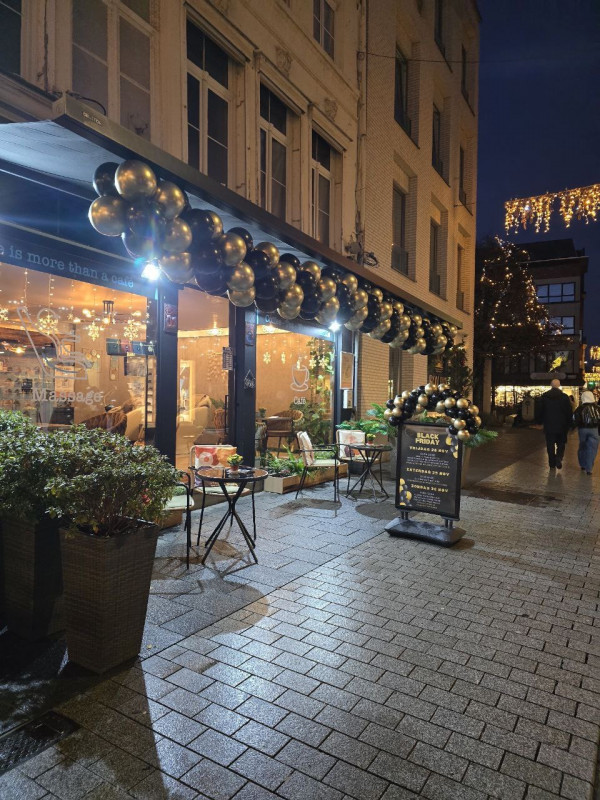 De zaak is gelegen in een ruime handelsruimte in het hart van Kortrijk, naast winkelcentrum K in Kortrijk, met veel passage en uitstekende zichtbaarheid.