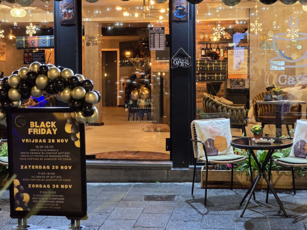 Alle meubels, massagestoelen en vaste inrichting blijven aanwezig, waardoor de zaak onmiddellijk kan worden verdergezet zonder extra investeringen.