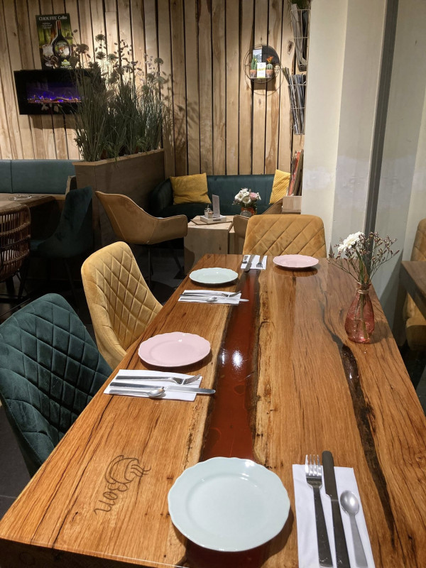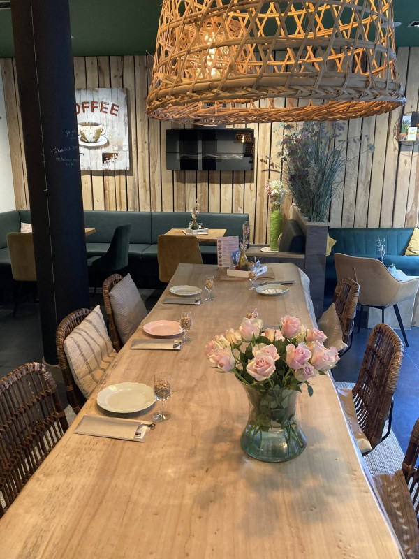 Dankzij de flexibele indeling is de zaak geschikt voor zowel kleine groepen als individuele bezoekers wat bijdraagt aan veelzijdigheid en aantrekkingskracht. Het interieur eigen ontwerp en uit eigen atelier gemaakt.