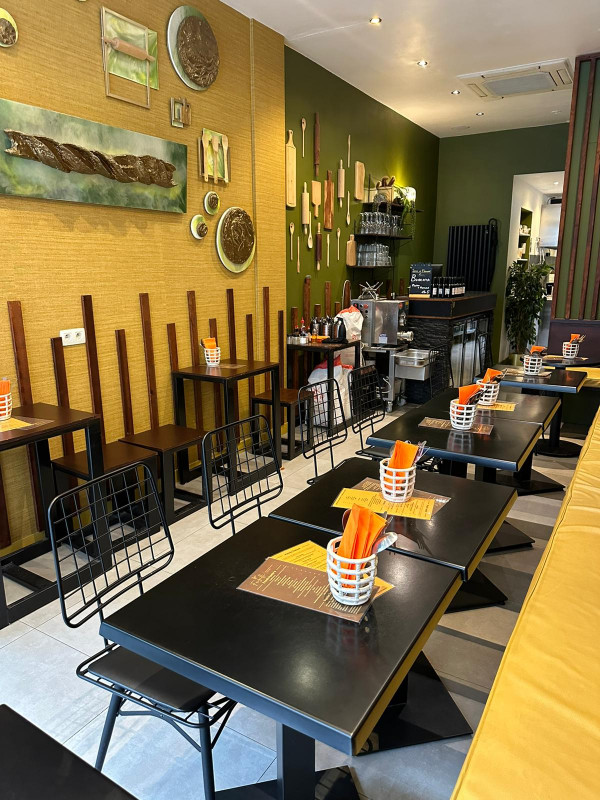 -Inkomhal, zaal, bar, professionele keuken/bakplaats, stockkamer, berging, aparte dames en heren wc's/wasplaats, interne trap naar bovenliggende studio, de studio zelf.
