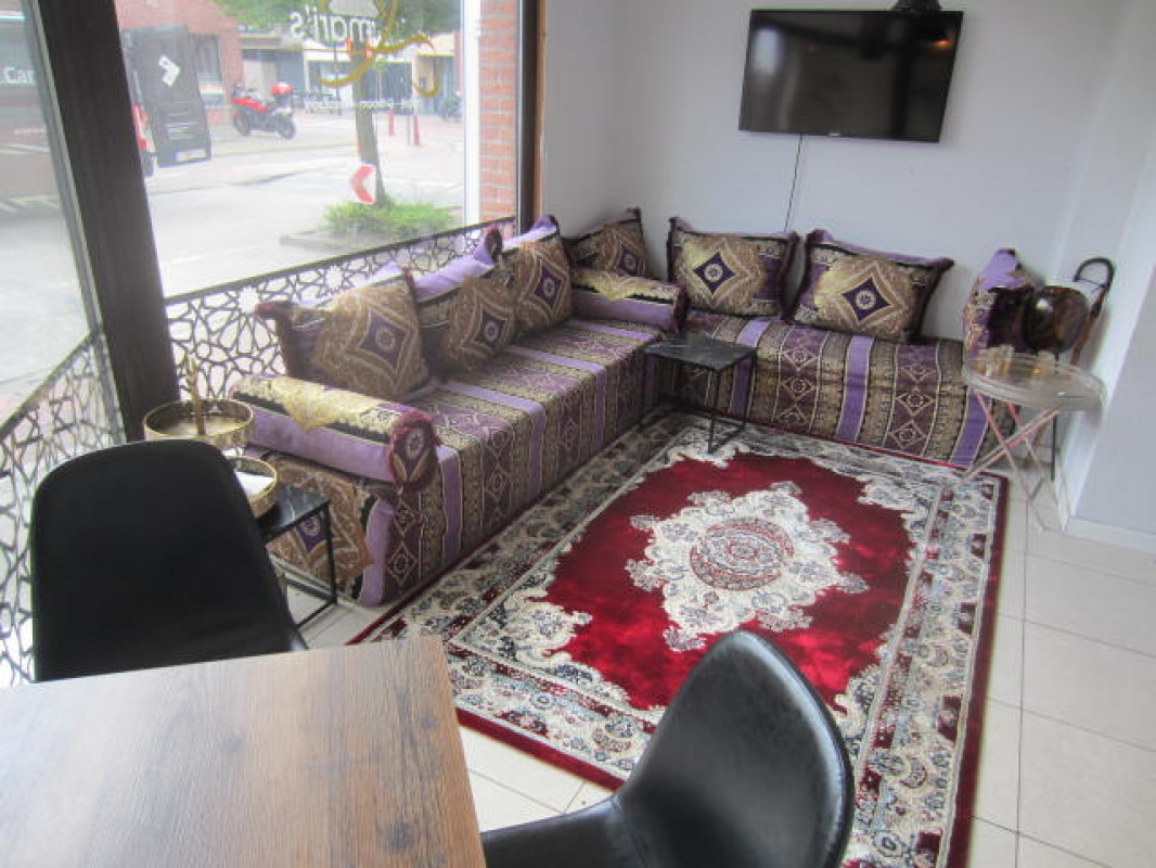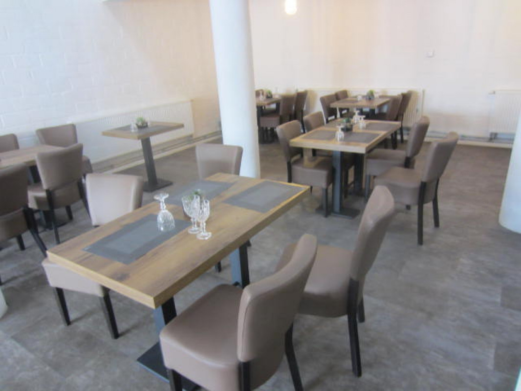 Deze zaak bestaat uit een ruime verbruikzaal van ongeveer 150 m2 groot met een bedieningstoog en een 52 tal zitplaatsen ( meer is mogelijk ) .