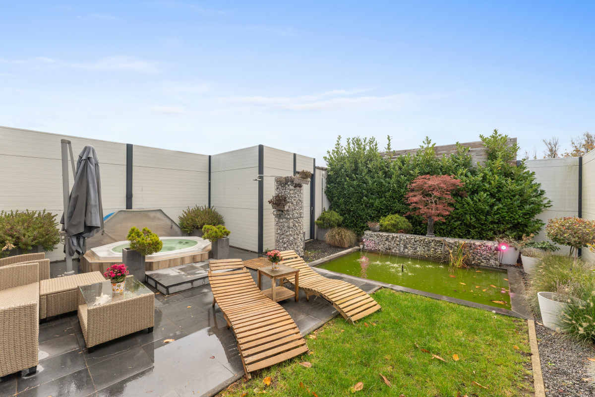 ° er zijn 2 tuinarea's: de spa-tuinzone 75m² en een tweede tuin 120m² voor de B&B of privé benutbaar. Het groot bijhuis / tuinhuis 50m² kan eenvoudig omgevormd worden naar uitbreiding op de wellness, kantoor, nagelsalon, extra garage, spelruimte voor de B&B,....).